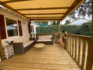 Camere: 1The air-conditioned mobile home has 2 bedrooms and 1 bathroom with a shower and a hairdryer. In the kitchen, guests will find a refrigerator, kitchenware, a microwave and a toaster. Boasting a terrace with garden views, this mobile home also offers a tea and coffee maker and a flat-screen TV. The unit has 3 beds.