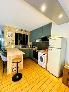 Apartmán v Le Mouette - Seaside má 1 ložnici, TV s plochou obrazovkou a kuchyň s lednicí, myčkou, pračkou, troubou a mikrovlnnou troubou.