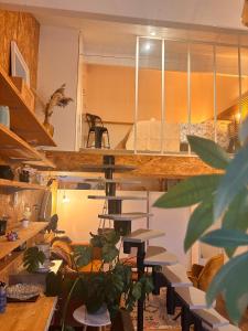 Presso Le Nid - Duplex atypique avec vue sur les toits troverete un appartamento con 1 camera da letto e cucina attrezzata con frigo, lavastoviglie e macchina da caffè.