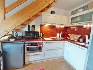 Apartmán Le nid de Juliette, T3 duplex, parking, cave nabízí 2 ložnice, 1 koupelnu, plně vybavenou kuchyň s jídelním koutem a lednicí a obývací část s TV s plochou obrazovkou. Koupelna je vybavená sprchou.