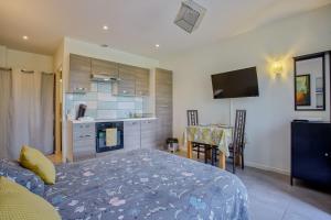 The studio features a tea and coffee maker, a wardrobe, as well as a private bathroom boasting a shower and a hairdryer. In the well-equipped kitchen, guests will find a refrigerator, kitchenware, an oven and a microwave. This studio provides heating, a TV and a balcony. The unit has 1 bed.