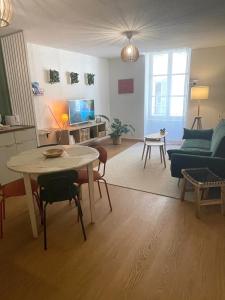 Le Palmae, cosy & chic - Hyères centre historique dispone di aria condizionata, 1 camera da letto, soggiorno, cucina attrezzata e bagno con set di cortesia. Presso Le Palmae, cosy & chic - Hyères centre historique la dotazione include lenzuola e asciugamani.