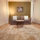 The apartment includes 1 bedroom, 1 bathroom with a shower, a seating area, and a fully equipped kitchen with a fridge. Towels and bed linen are featured in the apartment.
