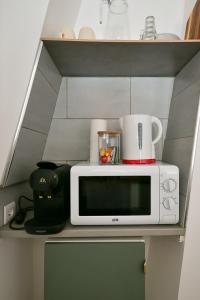 A Le petit havrais troverete una TV a schermo piatto. La cucina comprende frigorifero, microonde e piano cottura, più macchina da caffè e bollitore elettrico.
