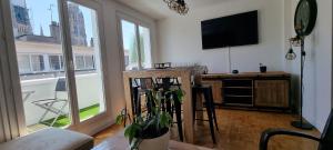 Boasting a private entrance, this apartment features 1 living room, 2 separate bedrooms and 1 bathroom with a shower and a hairdryer. Meals can be prepared in the kitchen, which has a stovetop, a refrigerator, a dishwasher and kitchenware. Featuring a terrace with city views, this apartment also features a washing machine and a flat-screen TV with satellite channels. V této ubytovací jednotce se nachází 3 postele.