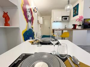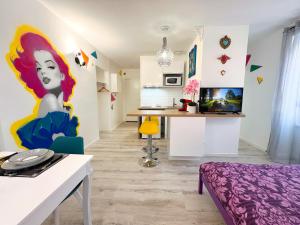Apartament Le Pop Art - Studio near Train Station - 2 people obejmuje sypialnię oraz kuchnię. W obiekcie znajduje się telewizor z płaskim ekranem.