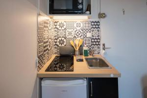 The apartment's kitchenette, which has a refrigerator and a microwave, is available for cooking and storing food. This apartment features a washing machine, a tea and coffee maker, a flat-screen TV and a balcony. The unit provides 1 bed.