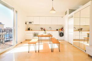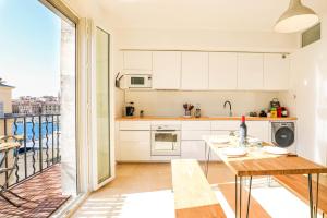 The kitchen at Le Pythéas - Vue Vieux-Port avec terrasse et clim has a dishwasher, oven, and microwave, and there is a private bathroom with a hair dryer and free toiletries. The property offers city views.