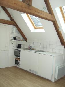 - Small kitchen area,