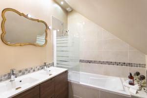 Prázdninový dům Le Repos des Vagues - 4min de la Plage nabízí 2 ložnice, obývací prostor, 1 koupelnu a kuchyň s myčkou a lednicí. V koupelně ubytování ubytování nechybí vana a toaletní potřeby zdarma. V ubytování Le Repos des Vagues - 4min de la Plage jsou pro hosty připraveny ručníky a ložní prádlo.