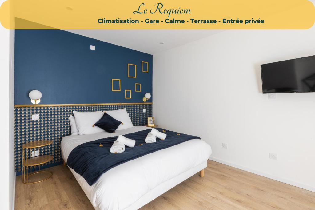 Tento apartmán v přízemí má 1 ložnici, TV s plochou obrazovkou a kuchyň s kompletním vybavením včetně lednice, myčky nádobí, pračky, mikrovlnné trouby a varné desky. Apartmán Le Requiem -Terrasse -Climatisation -Gare poskytuje hostům ručníky a ložní prádlo.