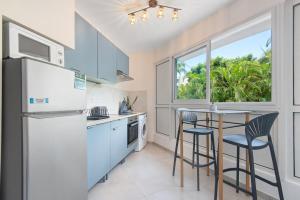 Klimatizovaný apartmán Le Studio à deux pas de la mer , confort moderne au cœur de Saint-Gilles les Bains nabízí 1 ložnici, posezení a 1 koupelnu s fénem a toaletními potřebami zdarma. Apartmán ubytování má plně vybavenou kuchyň s lednicí, troubou a mikrovlnnou troubou, jídelní kout a koupelnu.