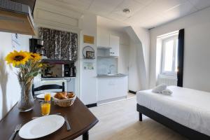 Apartmán v Le Studio d'Isa má 1 ložnici, 1 koupelnu se sprchou a kuchyňský kout s mikrovlnnou troubou a lednicí. Apartmán Le Studio d'Isa poskytuje hostům ručníky a ložní prádlo.