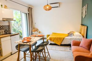The studio features air conditioning, a washing machine, as well as a private bathroom boasting a shower and a hairdryer. The well-equipped kitchenette has a stovetop, a refrigerator, kitchenware and a microwave. The studio provides a coffee machine and a sofa. The unit has 2 beds.