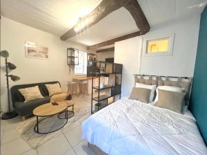 Klimatizovaný apartmán Le Viala, Studio dans le centre historique de Hyères zahrnuje 1 ložnici, TV s plochou obrazovkou, jídelní kout, kuchyň s lednicí a obývací pokoj. Apartmán Le Viala, Studio dans le centre historique de Hyères poskytuje hostům ručníky a ložní prádlo.