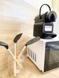 Guests can make meals in the kitchen that is fitted with a stovetop, a refrigerator, kitchenware and a microwave. Boasting a terrace, this apartment also offers a coffee machine, parquet floors and a flat-screen TV. The unit has 1 bed.