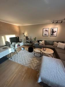 L'appartement du Leilighet leie comprend 2 chambres, un coin salon avec TV à écran plat, une cuisine (réfrigérateur, lave-vaisselle) et une salle de bains avec douche. Le linge de lit et les serviettes sont fournis par Leilighet leie.