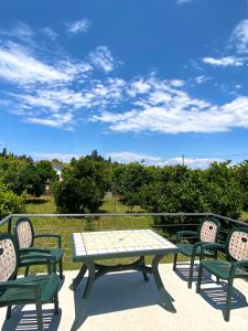 Boasting a private entrance, this air-conditioned holiday home comes with 1 living room, 1 separate bedroom and 1 bathroom with a shower and a hairdryer. Meals can be prepared in the kitchen, which features a refrigerator, kitchenware, an oven and an electric kettle. Featuring a terrace with garden views, this holiday home also features a washing machine and a flat-screen TV. V této ubytovací jednotce se nachází 2 postele.