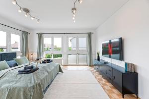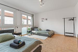 Diese Ferienwohnung im Lemon Suites Hildrizhausen - Ideal für Teams und Monteure bietet 3 Schlafzimmer, ein Wohnzimmer, eine Küche mit Kühlschrank und Kaffeemaschine sowie 1 Bad mit Dusche und Pflegeprodukten. In dieser Ferienwohnung werden Handtücher und Bettwäsche angeboten.