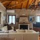 Set amidst a blossomed garden of lemon and olive trees, this stone-built villa offers unobstructed views over the Aegean Sea and includes: -3 bedrooms (4 bedrooms in case of 8 guests reservation) -1 living room, one with fireplace -1 dining area -a fully equipped kitchen -2 bathrooms (3 bathrooms in case of 8 guests reservation) and an additional toilet.