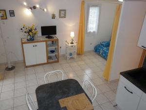 Die Unterkunft LES AMANDINES bietet ihren Gästen eine Terrasse, einen Sitzbereich, einen Flachbild-TV, eine voll ausgestattete Küche mit einem Kühlschrank und einem Ofen sowie ein eigenes Badezimmer mit einer Dusche. Es gibt eine Mikrowelle, eine Herdplatte und einen Toaster sowie eine Kaffeemaschine und einen Wasserkocher.