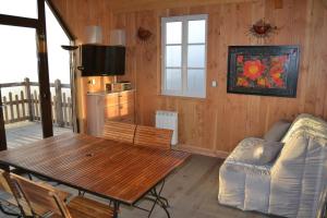 Questo chalet offre una terrazza, 1 camera da letto, un soggiorno e un angolo cottura con frigorifero e microonde. A Les cabanes des Fontaines lenzuola e asciugamani sono inclusi.