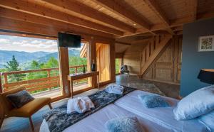 El chalet de montaña ofrece terraza, vistas a la montaña, zona de estar, TV de pantalla plana vía satélite, cocina totalmente equipada con nevera y lavavajillas, y baño privado con ducha y artículos de aseo gratuitos. Les Chalets de La Marcairie también dispone de horno, microondas, fogones, cafetera y hervidor.
