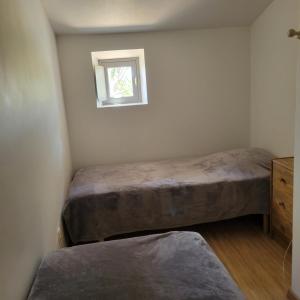 This holiday home has a kitchen and a living room on the ground floor. The bedrooms and private bathroom are located on the upper floor.