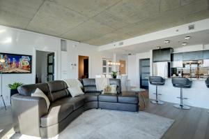 This apartment has a fully equipped kitchen and a spacious living area with a flat-screen TV. Laundry facilities are included.