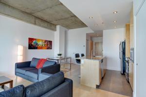 Apartament Les Immeubles Charlevoix - Le 760-605 oferuje sypialnię, łazienkę, jadalnię, w pełni wyposażoną kuchnię oraz pościel i ręczniki. W dostępny jest telewizor z płaskim ekranem i kanałami kablowymi oraz balkon z widokiem na miasto.