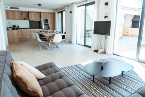 Prázdninový dům v les palivettes12 nabízí 4 ložnice, 3 koupelny, ložní prádlo, ručníky, satelitní TV s plochou obrazovkou, jídelní kout a plně vybavenou kuchyň. Z terasy ubytování les palivettes12 se otevírá výhled na město. V koupelně ubytování ubytování nechybí sprcha ani fén.