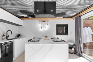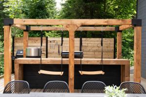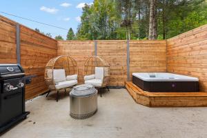 This chalet features a hot tub and a fireplace. Boasting a private entrance, this air-conditioned chalet features 1 living room, 1 separate bedroom and 1 bathroom with a shower and a hairdryer. Guests will find a stovetop, a refrigerator, a dishwasher and kitchenware in the well-fitted kitchenette. The chalet also comes with a barbecue. Featuring a terrace with garden views, this chalet also features soundproof walls and a flat-screen TV with streaming services. V této ubytovací jednotce se nachází 1 postel.