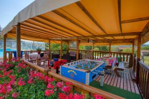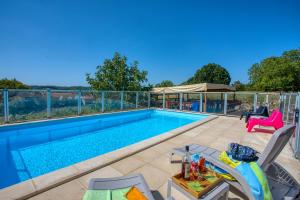 The pool with a view is the standout feature of this holiday home. Featuring a private entrance, this holiday home comprises a kitchen, 1 bedroom and 1 bathroom with a shower and a hairdryer. Guests will find a stovetop, a refrigerator, kitchenware and a microwave in the kitchen. The holiday home also provides guests with a barbecue. The holiday home provides a tea and coffee maker, a dining area, a wardrobe as well as a terrace with garden views. The unit offers 3 beds.