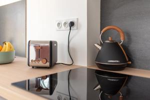 The studio features a washing machine, a coffee machine, as well as a private bathroom boasting a shower. In the well-equipped kitchen, guests will find a stovetop, a refrigerator, kitchenware and a microwave. This studio has parquet floors, heating, a flat-screen TV and a quiet street view. V této ubytovací jednotce se nachází 1 postel.
