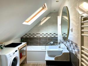 Prázdninový dům Les Templiers - maison avec cour à 20 m du port - Le Tréport nabízí 2 ložnice, obývací prostor, 1 koupelnu a kuchyň s myčkou a lednicí. Koupelna v ubytování Les Templiers - maison avec cour à 20 m du port - Le Tréport je zařízena vanou a fénem.