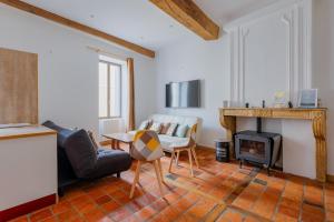 Les tomettes - centre Cluny consists of 1 bedroom, a fully equipped kitchen, and 1 bathroom. A flat-screen TV is featured.