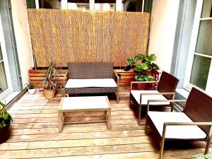 This spacious apartment comes with 1 living room, 1 separate bedroom and 1 bathroom with a shower and a hairdryer. Guests can make meals in the kitchen that features a stovetop, a refrigerator, a dishwasher and kitchenware. Boasting a terrace with city views, this apartment also features a washing machine and a flat-screen TV with streaming services. The unit has 1 bed.