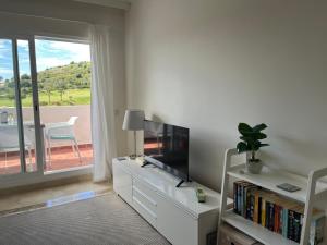 This apartment features a private pool. This spacious apartment is comprised of 2 bedrooms, a kitchen and 2 bathrooms with a bath and a shower. The well-fitted kitchen features a refrigerator, a dishwasher, an oven and a microwave. The air-conditioned apartment offers a flat-screen TV, a washing machine, a dining area, a wardrobe as well as sea views. The unit provides 3 beds.