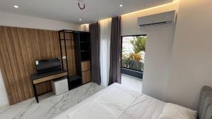 Featuring free toiletries and bathrobes, this twin/double room includes a private bathroom with a bath, a shower and a bidet. The air-conditioned twin/double room features a flat-screen TV, a tea and coffee maker, a dining area, a wardrobe as well as sea views. V této ubytovací jednotce se nachází 2 postele.