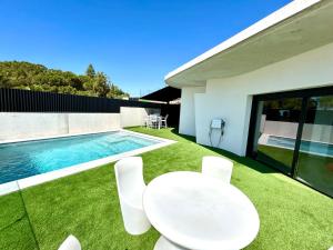 This holiday home's special features are the private pool and the hot tub. The air-conditioned holiday home features 2 bedrooms, 2 bathrooms and a kitchen. The holiday home's kitchen is available for cooking and storing food. Featuring a terrace with garden views, this holiday home also provides a washing machine and a flat-screen TV. The unit offers 3 beds.