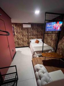 L'appartement Lindo e aconchegante comprend une chambre, une télévision à écran plat et une cuisine.