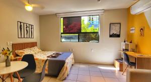 - Power outlet near the bed