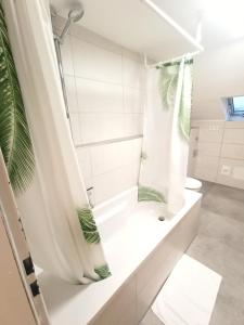 Featuring a private entrance, this holiday home consists of 1 living room, 3 separate bedrooms and 1 bathroom with a bath and a shower. The well-fitted kitchen features a stovetop, a refrigerator, a dishwasher and kitchenware. Boasting a balcony with garden views, this holiday home also provides a tea and coffee maker and a flat-screen TV. The unit offers 6 beds.