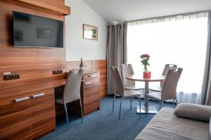 Byt měl dvě místnosti, předsíň a koupelnu s WC, což poskytovalo dostatek prostoru. Kuchyňský kout byl malý, ale postačoval, protože vaření nebylo potřeba. Součástí Wellness hotelu Frymburk bylo přímé vstup do aquaparku a saunového světa v županech zahrnutých v ceně. Parkování bylo pohodlné přímo u vchodu a na vyšší patra se dalo dostat výtahem. Lokalita byla ideální díky blízkosti Lipenského jezera i okolních turistických atrakcí.