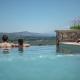 La villa con aire acondicionado en Listen to Nature in a Renovated Traditional Hilltop Villa Liodosifis with Heated Pool tiene tres dormitorios, sala de estar, cocina con nevera y cafetera, y tres baños con ducha y bidet. La villa el alojamiento facilita toallas y ropa de cama.