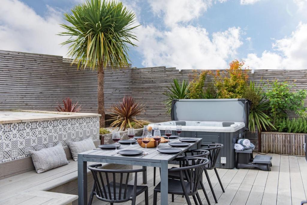 Camere: 1Guests will have a special experience as this holiday home offers a hot tub. The holiday home features 3 bedrooms, 2 bathrooms and a kitchen. Guests will find a refrigerator, a dishwasher, an oven and a microwave in the fully equipped kitchen. The holiday home also has a barbecue. This holiday home has a coffee machine, a high chair for children and a TV. The unit offers 6 beds.