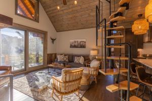 Guests will have a special experience as this holiday home provides a spa bath and a fireplace. Featuring a private entrance, this air-conditioned holiday home is comprised of 1 living room, 2 separate bedrooms and 2 bathrooms with a shower and a hairdryer. Guests will find a stovetop, a refrigerator, a dishwasher and kitchenware in the well-equipped kitchen. The holiday home also has a barbecue. The holiday home offers a washing machine, a tea and coffee maker, a seating area, a flat-screen TV with satellite channels, as well as mountain views. The unit offers 4 beds.