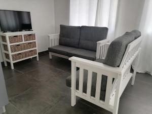 Featuring a private entrance, this holiday home consists of 1 living room, 2 separate bedrooms and 1 bathroom with a shower. Guests will find a stovetop, a refrigerator, an oven and a microwave in the kitchen. The holiday home also offers a barbecue. The holiday home provides a washing machine, a seating area, a dining area, a flat-screen TV with cable channels, as well as garden views. The unit offers 3 beds.