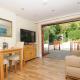 This holiday home features 1 bedroom, a seating area with a sofa and 1 bathroom with a walk-in shower. The fully equipped kitchen has a stovetop, a refrigerator, a microwave and an electric kettle. The holiday home features a TV, a dining area, a wardrobe, as well as heating. The unit has 1 bed.