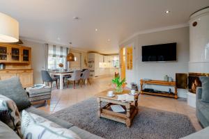Camere: 1The sauna and fireplace are the standout features of this holiday home. Featuring a private entrance, this spacious holiday home also consists of 3 bedrooms, a seating area and 3 bathrooms with a shower and a hairdryer. Guests can make meals in the kitchen that is equipped with a stovetop, a refrigerator, a dishwasher and kitchenware. Boasting a terrace, this holiday home also provides a washing machine, a coffee machine and a TV. The unit offers 3 beds.